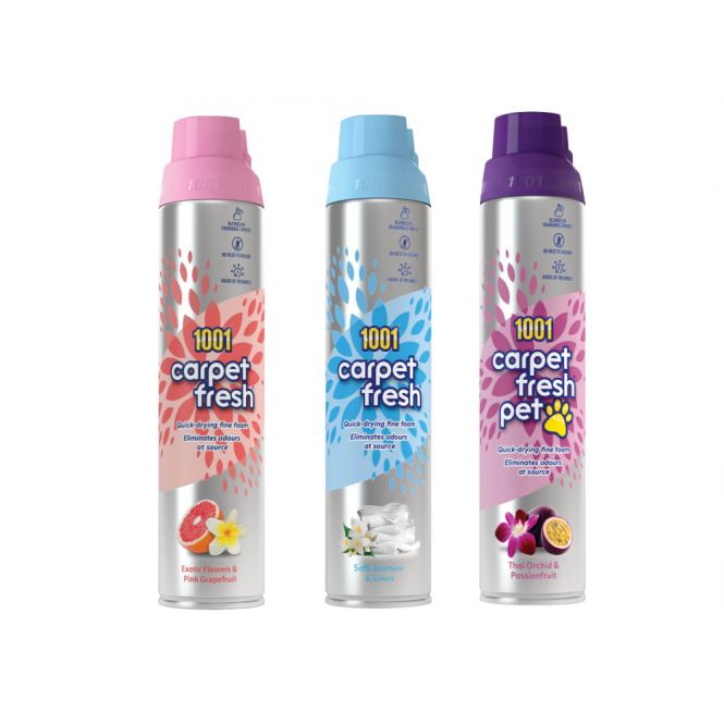 1001 Carpet Fresh has a quick-drying foam formula that penetrates deep into your carpets, instantly neutralising stubborn odours and giving you hours of freshness. It's quick and easy-to-use on carpets, rugs and upholstery without the need to vacuum.
