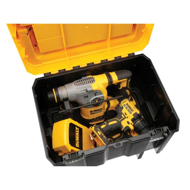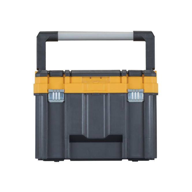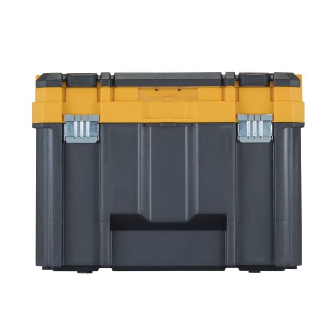 The DEWALT Deep TSTAK™ is made from tough, 3mm polypropylene plastic. It has solid metal hinges and heavy-duty metal latches, making it extremely robust. In addition, it has a strong, long metal handle with a top organiser for small parts organisation. It also has deep storage of larger, bulky items.