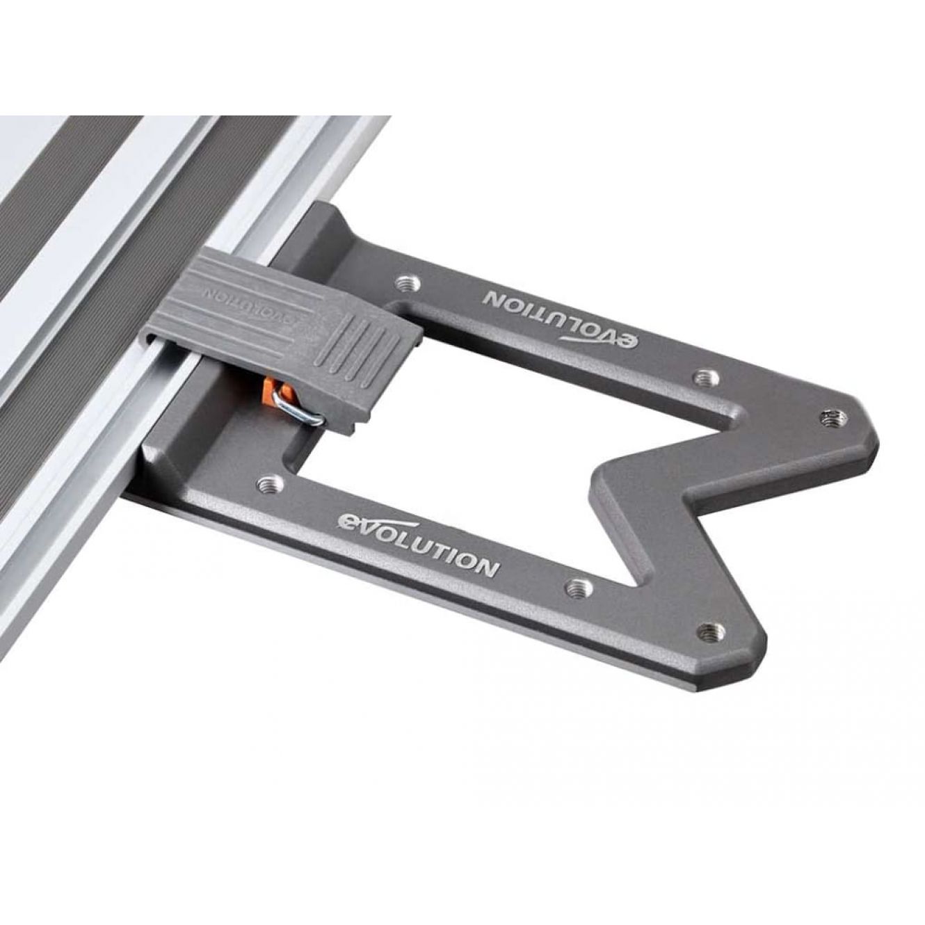 Designed to be versatile it fits a huge range of guide rails from leading manufacturers as well as Evolution’s own circular saw guide rails. In the box you’ll find an extra clamp, this allows you to use it with tracks which have an anti-tip feature, giving you compatibility with the widest range of Guide Rails from other brands.