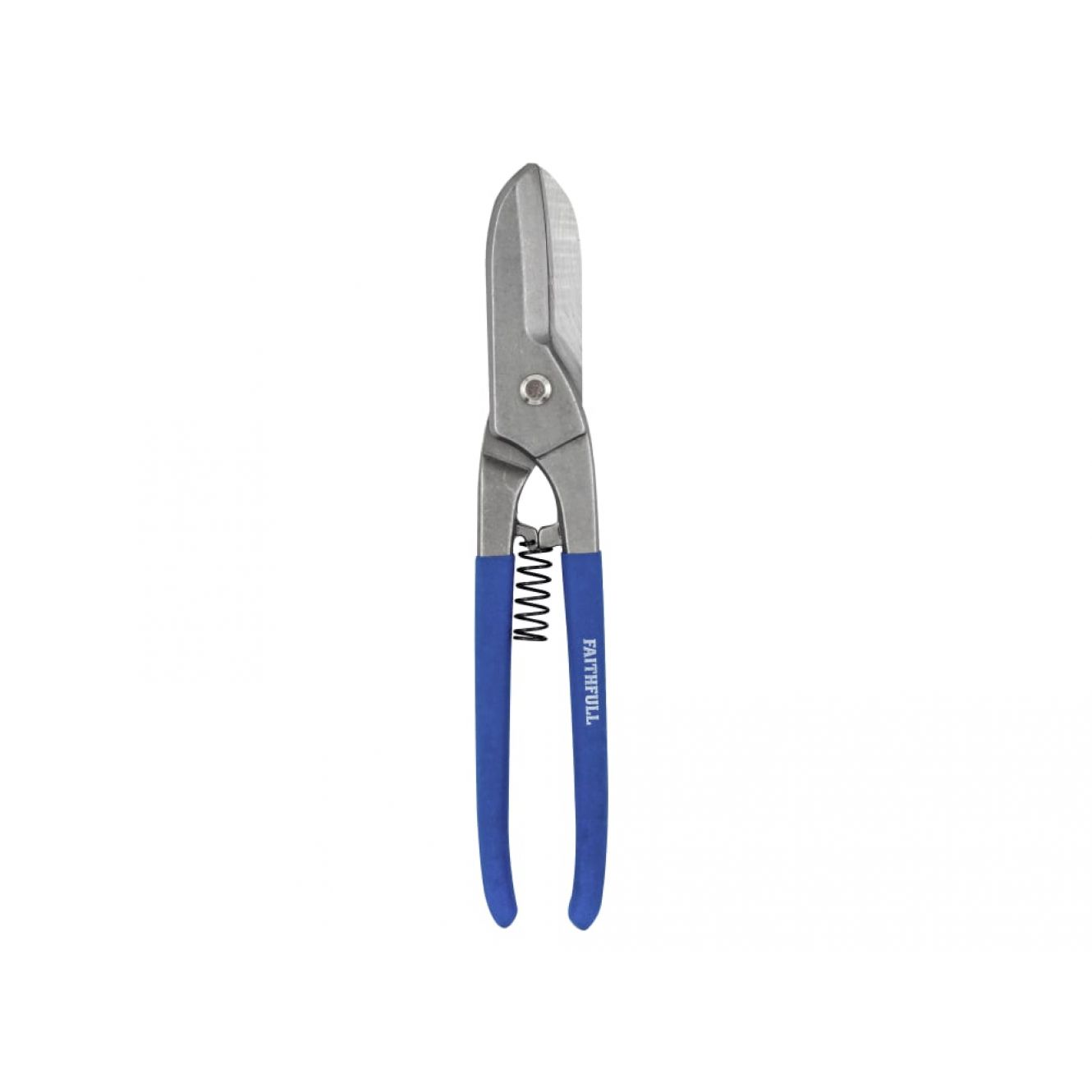 These Faithfull Straight Tinsnips are crafted from 55# carbon steel through integral forging and pressing, these tin snips feature a natural surface finish. The handles are made from durable PVC plastic, ensuring a comfortable grip. Designed for cutting sheet metal with a scissor-like action, these snips provide maximum cutting power and control using hand leverage alone.