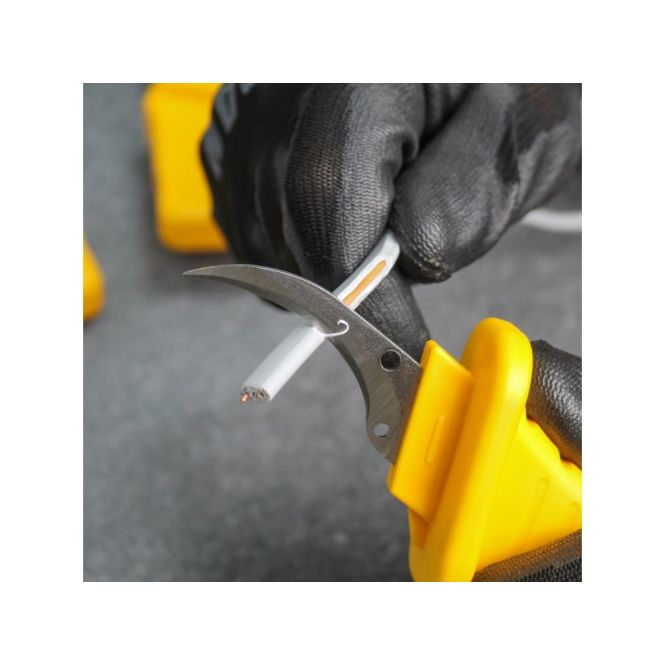 The blade is made from high-quality 60 CRV steel, which provides exceptional sharpness and durability, making it perfect for cutting through tough cable materials. Fitted with a bi-coloured, injected moulded ergonomic handle. Made from insulated PP & TPR, offering a comfortable, non-slip grip that reduces hand fatigue during prolonged use.