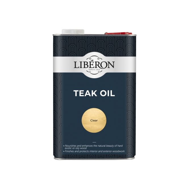 Liberon Teak Oil is a blend of pure, high quality tung oil and linseed oil. It nourishes, protects and enhances the natural beauty of hard, exotic and oily woods, including teak, rosewood and iroko. It produces a hard wearing, satin finish. With added UV filters for protection against fading from sunlight. Suitable for interior and exterior use.