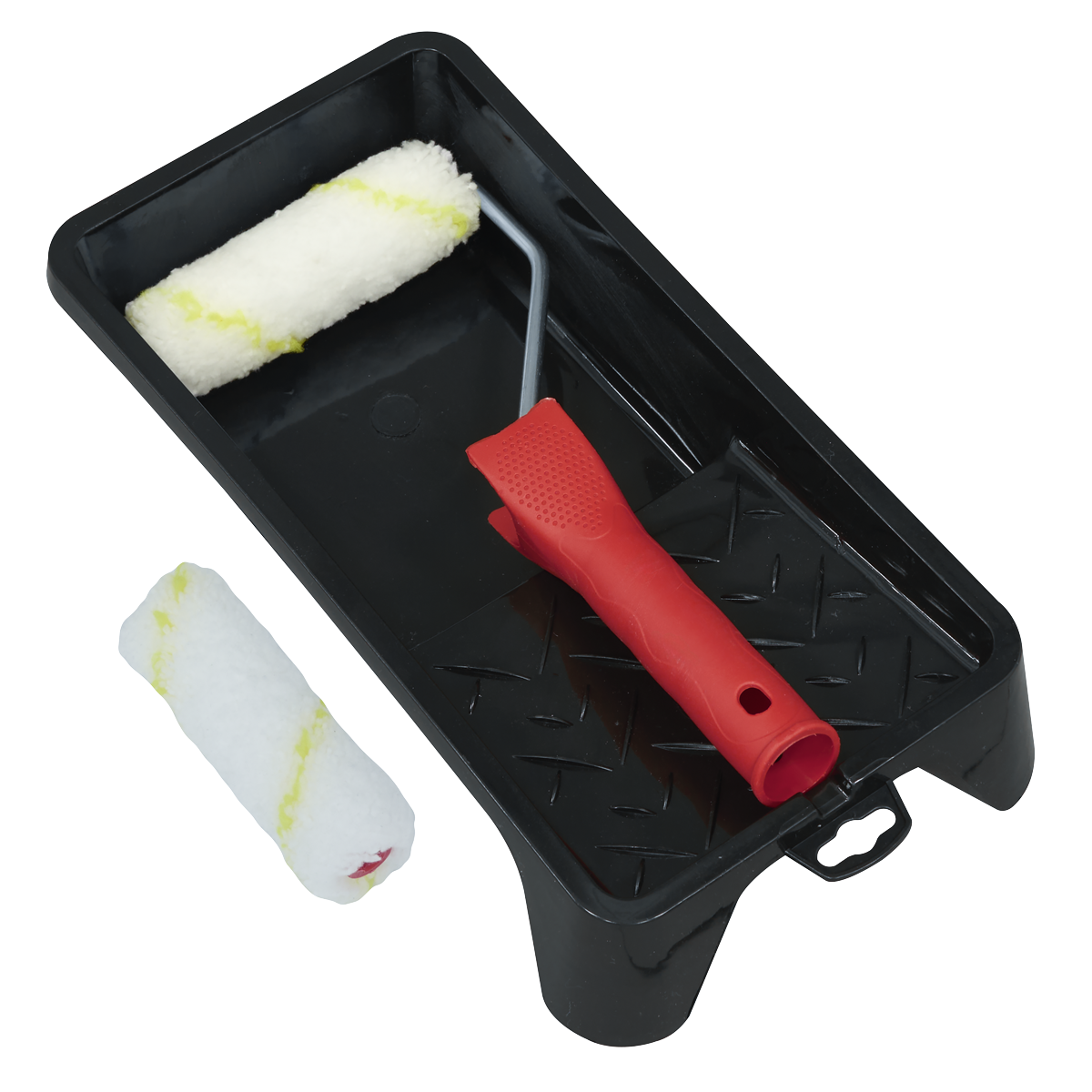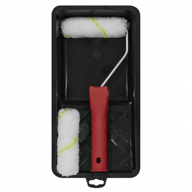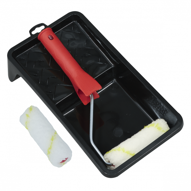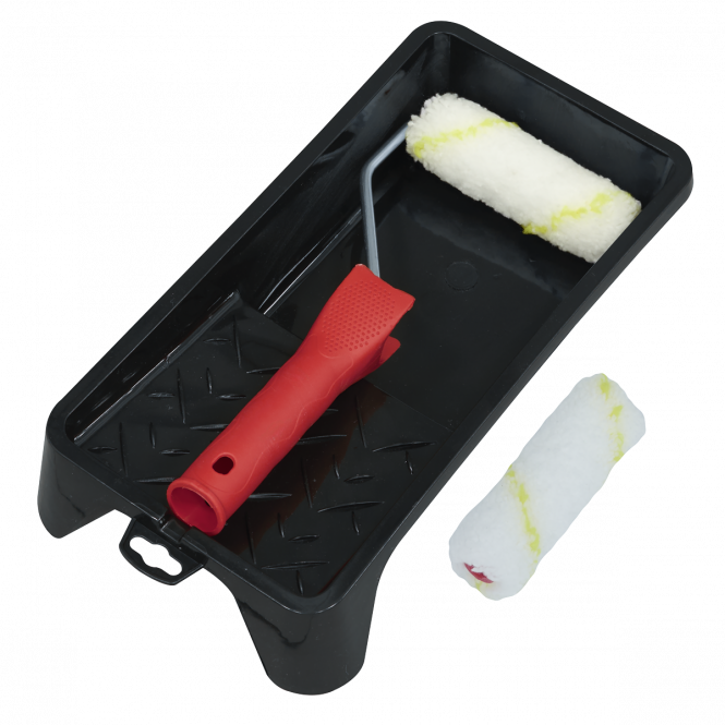 4" Roller is the perfect size for touch-ups and working in small spaces. Tray can hold large volumes of paint with application area to cover roller. Two rollers to easily swap between colours or keep it spare for next time you need to paint. Roller picks up lots of paint and applies paint in a smooth, consistent layer.
