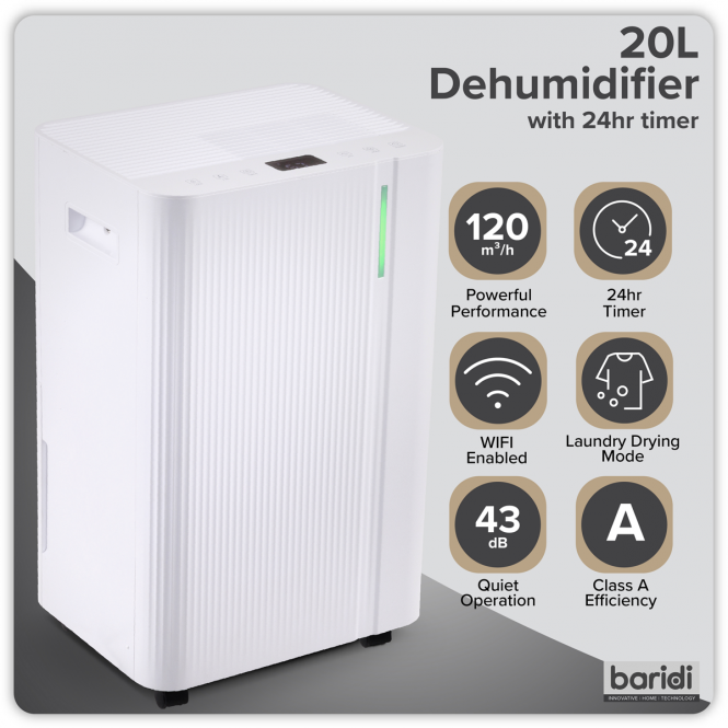- Baridi Dehumidifier with Digital Display & 24hr Timer 12L - White DH147