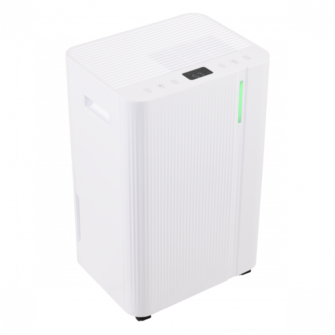 Can circulate and dehumidify 120m³/h this is enough to clear multiple rooms with one single unit. Low running cost as this product is rated as A-class efficiency. Reciprocating compressor ensures no distracting noise while in use working at a whisper quiet 43dB. Compact design with four swivel castors and side handle makes moving the unit between rooms effortless. Digital colour display and multiple modes including auto mode, laundry mode and sleep mode. Laundry mode aids in the fast and effective drying of clothes inside. Can operate at temperatures as low as 5°C and as high as 35°C meaning this unit works perfectly at any time of the year. Unit can be used in continuous drainage mode and safety features include automatic stop when 4.5L tank is full, 24-hour timer, child lock and auto defrost. Suitable for rooms 20-30㎡ in size. WIFI enabled using either Tuya or Smartlife app.
