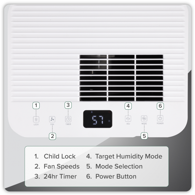- Dehumidifying Capacity: 10L/Day @ 26.7℃, 60% RH 20L/Day @ 30℃, 80% RH