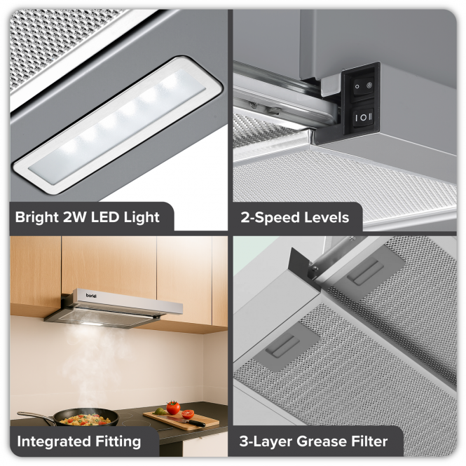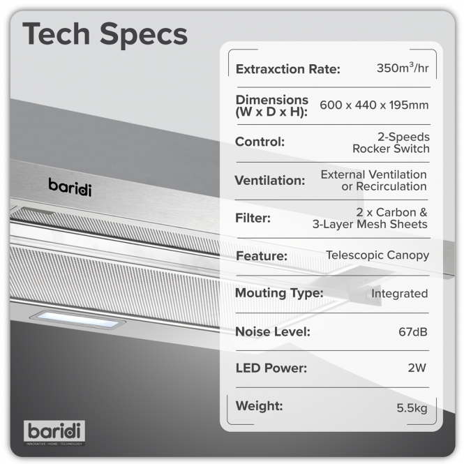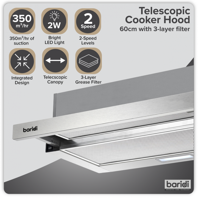 - Baridi Telescopic Cooker Hood with Aluminium Filters 60cm - Stainless Steel DH286