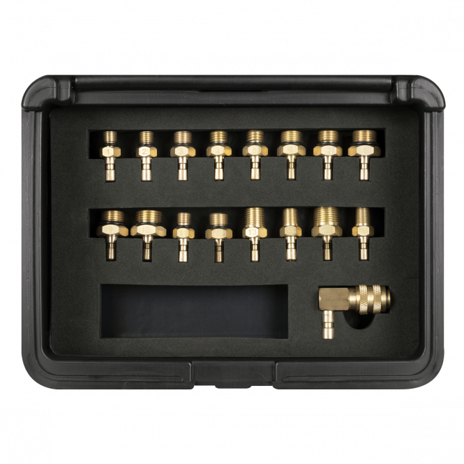 - Contents: M10 x 1, M10 x 1.25, M12 x 1.25, M12 x 1.5, M12 x 1.75, M14 x 1.25, M14 x 1.5, M16 x 1.25, M16 x 1.5, M18 x 1.5, 3/8-24UNF, 1/2-20UNF, NPT-1/4-18, NPT-1/8-27, NPT-3/8-18, ZG1/8-28, 90° Quick-release connector, Oil-Resistant Hose with a Quick-Release Connector