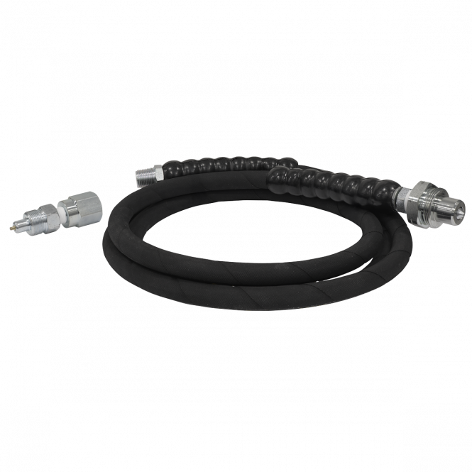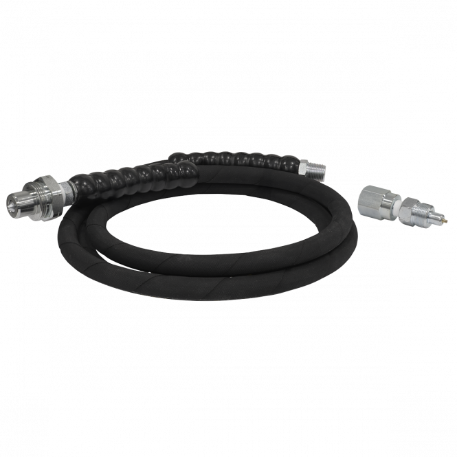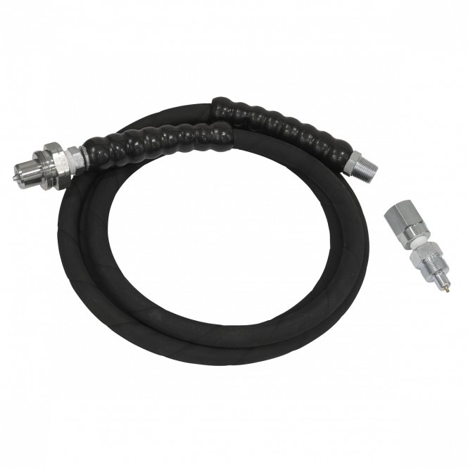 Rubber construction creates a strong and flexible hose. Designed to handle up to 10,000psi of pressure, making it suitable for demanding hydraulic applications. Compatible with a variety of hydraulic systems and equipment, making it a versatile choice for different applications. Suitable for use with RE109 and RE110. With a length of 2000mm allowing for more versatile use. Comes with both a high flow and a hydraulic jack coupling for use on all Sealey hydraulic equipment and most leading brands.