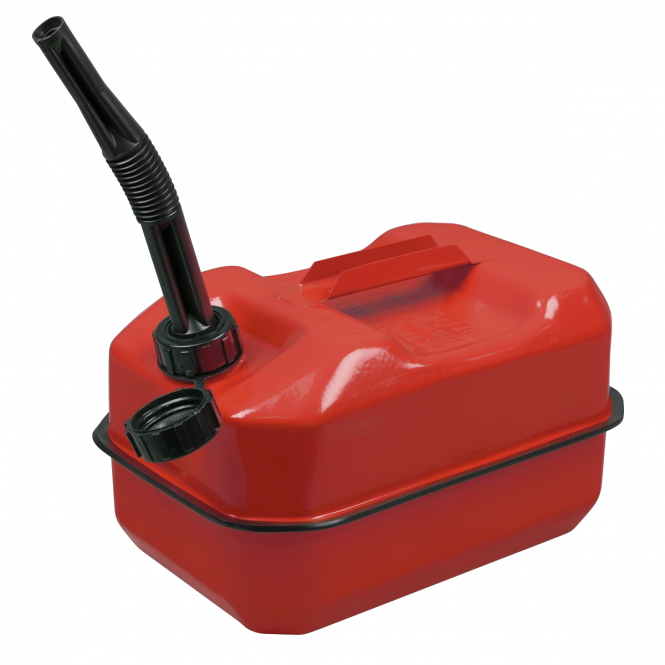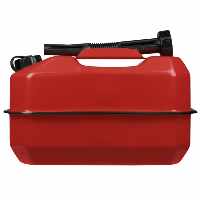 Wide flat design prevents tipping, making it ideal for transportation. Internal coating protects against corrosion to avoid fuel contamination. Handle design keeps the pouring spout in place when not in use.