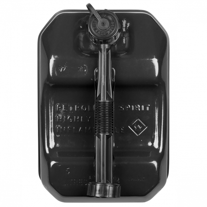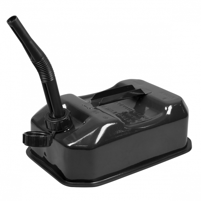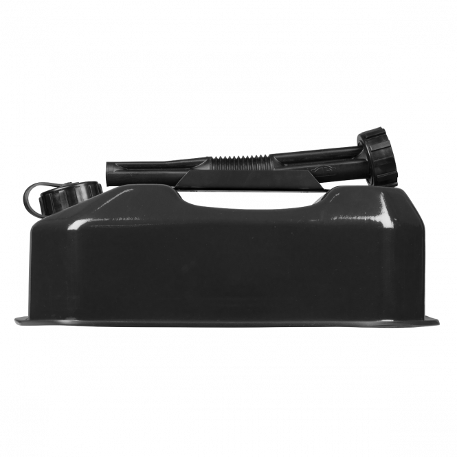 Wide flat design prevents tipping, making it ideal for transportation. Internal coating protects against corrosion to avoid fuel contamination. Handle design keeps the pouring spout in place when not in use.