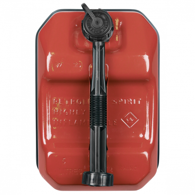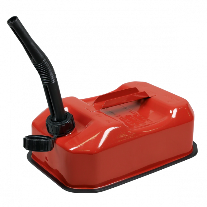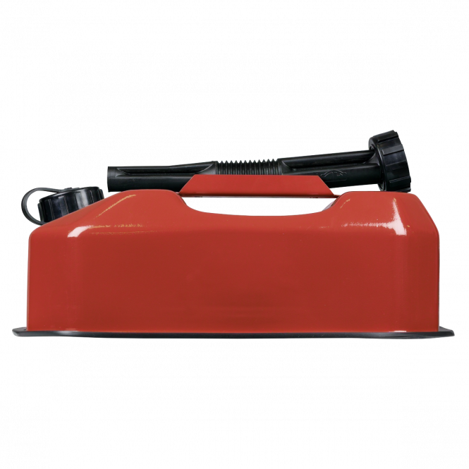 Wide flat design prevents tipping, making it ideal for transportation. Internal coating protects against corrosion to avoid fuel contamination. Handle design keeps the pouring spout in place when not in use.