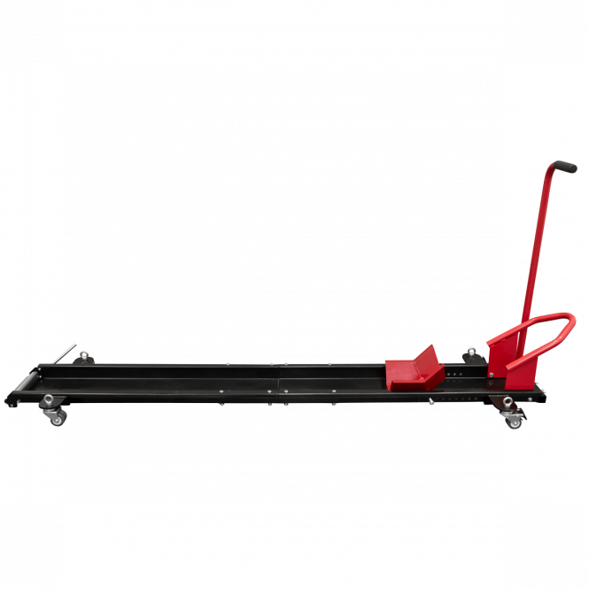 Motorcycle dolly holds a single motorcycle upright by the front wheel, weighing up to 500kg. Reposition around the workshop or garage quickly and efficiently. Rear lever operated wedge gate allows for easy loading and unloading. Features front clamp, to keep the motorcycle on the dolly during transportation. Glides on dual wheeled 360° castors.