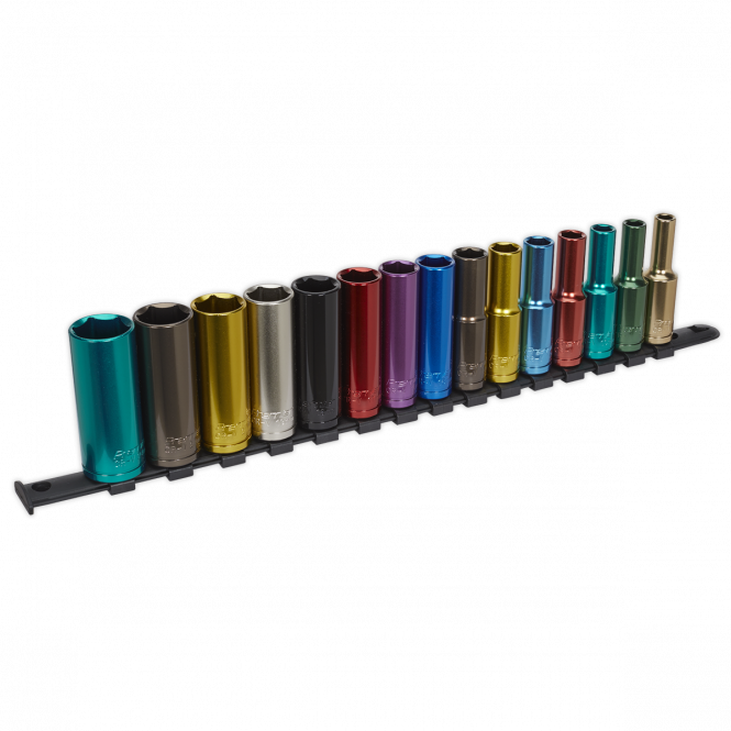 Sealey ToolsMulti-Coloured Socket Set 15pc 1/2"Sq Drive 6pt Deep WallDrive® Metric AK2874D