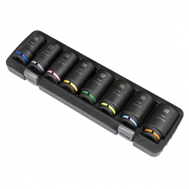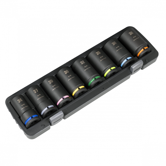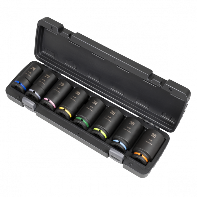 Manufactured from hardened and tempered Chrome Molybdenum steel with a phosphate finish for added corrosion resistance. 6-Point WallDrive® sockets allow a transfer of up to 30% more torque to the fixing. Colour-coded rings and enlarged socket size text for fast identification. Supplied in storage case.