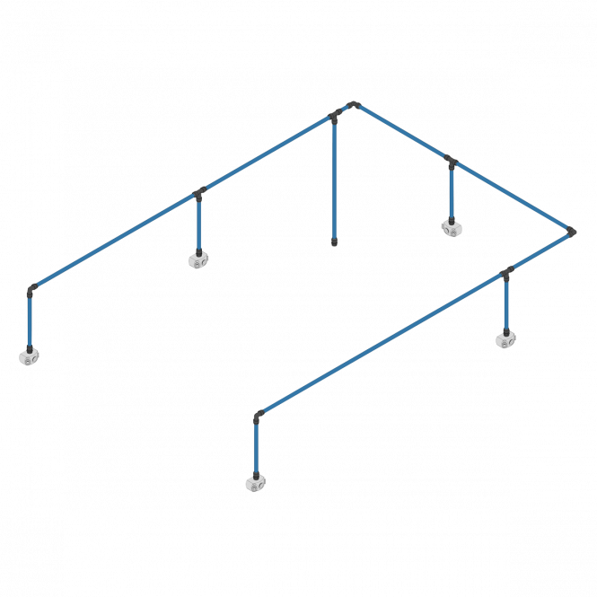 Install your own workshop compressed air ring main quickly and easily with the CAS system of fast fit Speedfit® compressed air fittings. Can also be used for drinking water movement. Made from lightweight yet strong acetal copolymer fittings and nylon pipe runs. Simple push action pipe fittings do away with preparing threaded tubes or applying solvents. Complex pipe and fitting configurations are also assembled more rapidly since the fittings can be disassembled and reconfigured quickly.