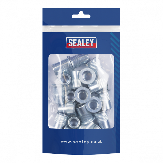 Flat Head Steel Rivet Nuts, M12 x 1.75mm, 24mm deep. Bright Zinc Plating ensures good corrosion resistance. The Rivet Nut is easy to install with a suitable rivet nut tool, they are splined to ensure a good anti-slip grip. Widely used in automotive applications and also suitable for many home and industrial applications.