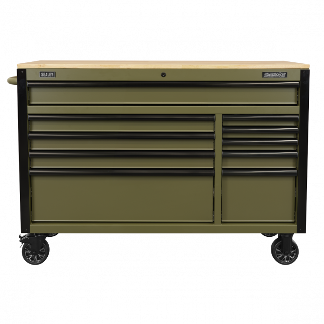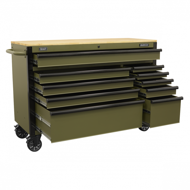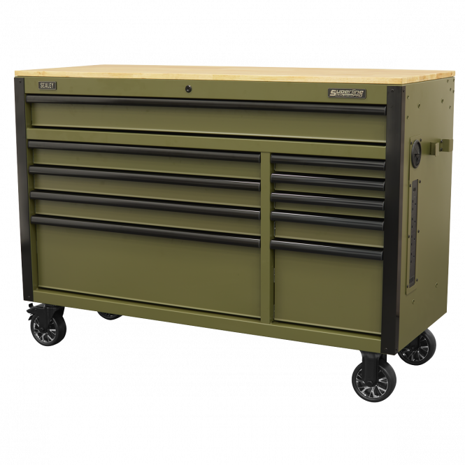 Sealey ToolsSuperline PRO® Mobile Trolley with Wooden Worktop & Power Bar 10 Drawer 1320mm AP5210KBE
