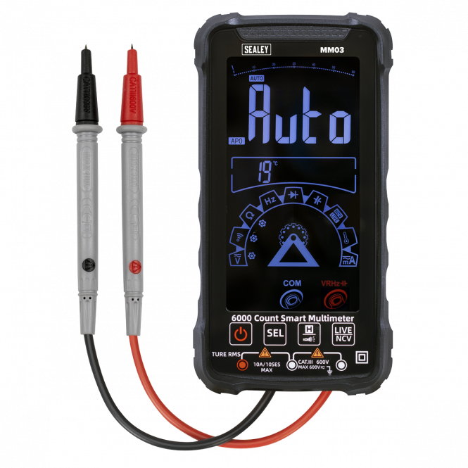 Sealey ToolsTouchscreen Rechargeable Auto-Ranging Digital Smart Multimeter 10-Function MM03