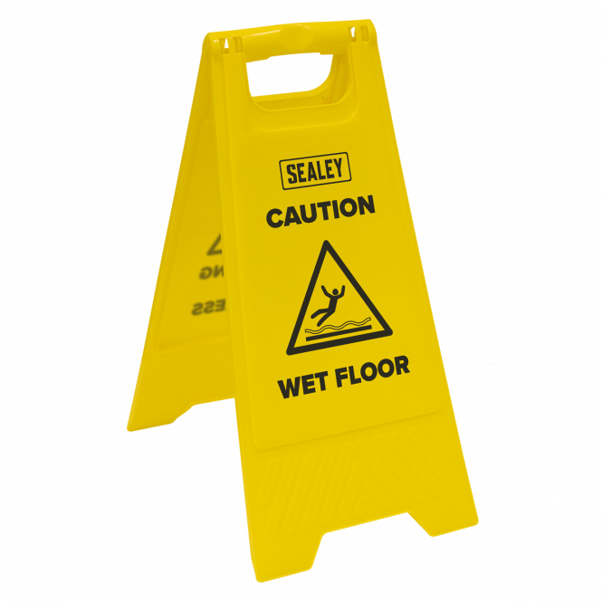 Bright yellow colour and bold black text ensure maximum visibility to alert people of wet floors and prevent accidents. Essential equipment for preventing accidents and ensuring safety by alerting people to slippery surfaces. Foldable design allows for compact storage and easy transport, making it simple to set up and put away. Includes two signs for greater coverage and flexibility, perfect for large areas or multiple locations. Manufactured from sturdy, high quality polypropylene that withstands heavy use and harsh conditions.