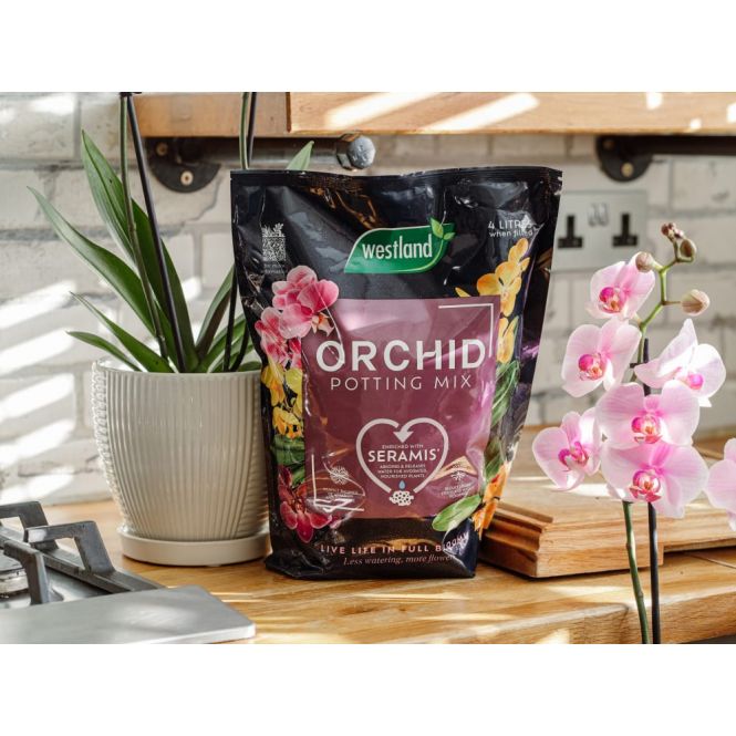 Westland Orchid Potting Mix, 4 litre, is a dry, free-draining, peat free mix preventing over watering and deters flies for healthier, happier orchids. Orchids love being in a mix which lets water run past their roots instead of sitting in a waterlogged pot, so this mix is perfect.