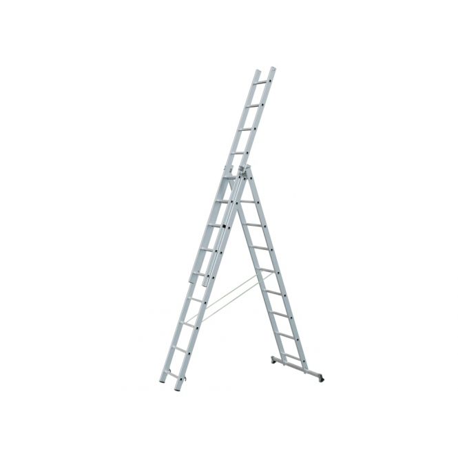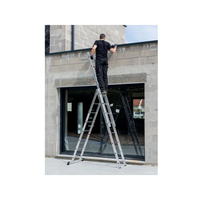The Zarges Light Trade Combination Ladder can be used as a single, double or triple ladder and an ‘A’ frame ladder. The stiles are manufactured from extruded aluminium sections, with high-quality flange connections between rungs and stiles for maximum stability. Fitted with high strength Perlon straps to prevent ladders splaying.